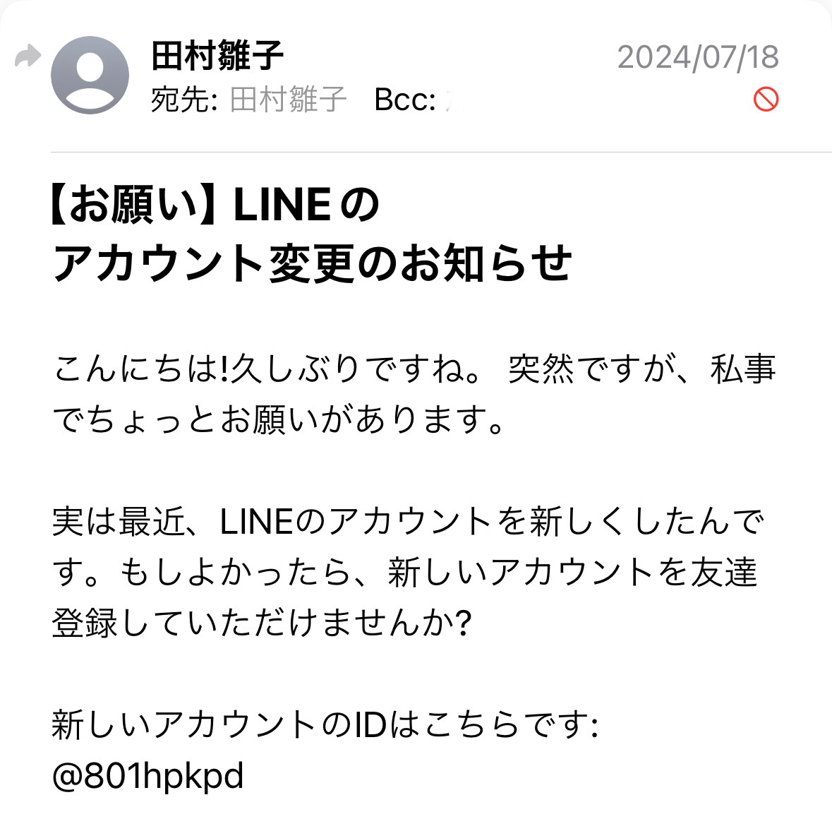 件名は最初のメールだけちょっと違いますが、結局はLINEアカウント変えましたって連絡に代わりはありません。